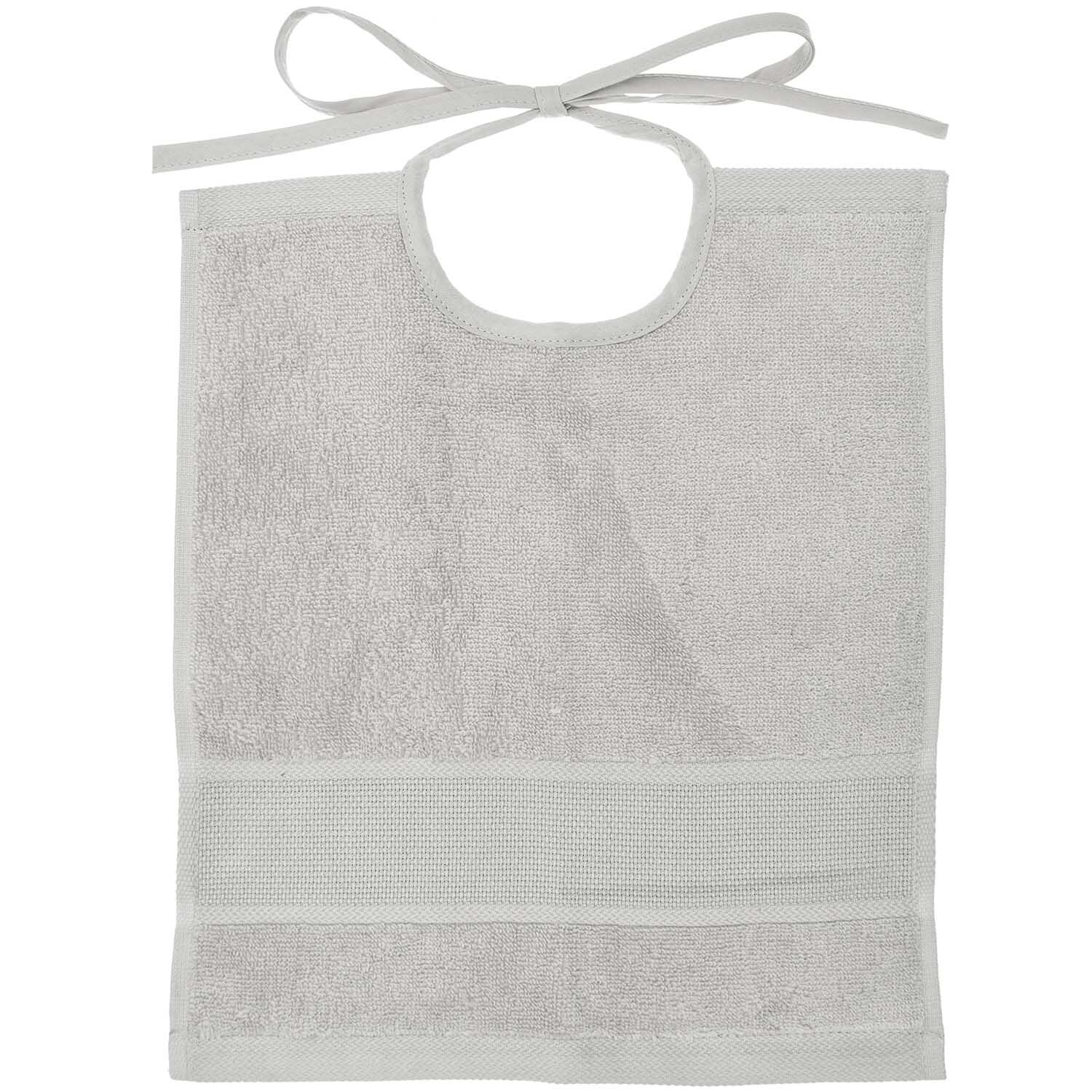 Das Lätzchen ist aus 100% Baumwolle / Frottier und hat eine Größe von 30x 34 cm.